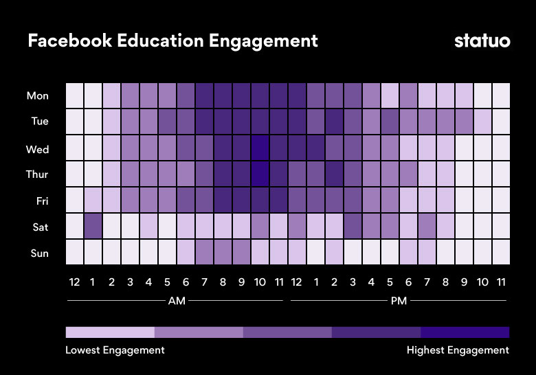 The best days and times to post on Facebook for education are Wednesdays and Thursdays at 10am.